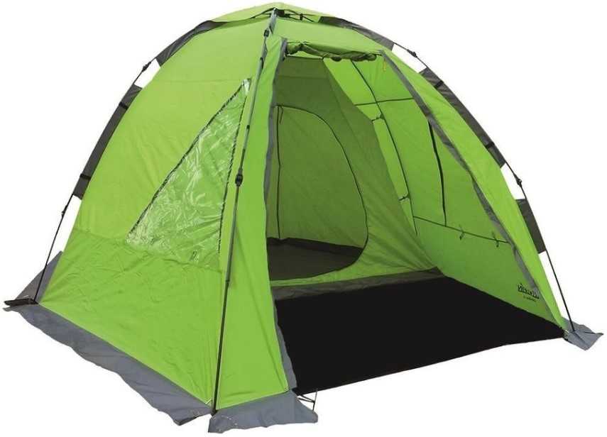 Большой хороший тамбур позволит разместить личные вещицы и даже использовать его как кухню. Прочная палатка относится к моделям кемпингового типа и имеет нестандартную геометрию. Имеет 2 входа и одну просторную комнату для семейного размещения. Модель полностью стоит своих денег и будет отличным выбором для автомобильного туризма и дружной семьи. Производитель оснастил модель вентиляционными окошками для непрерывной циркуляции воздуха в помещении.