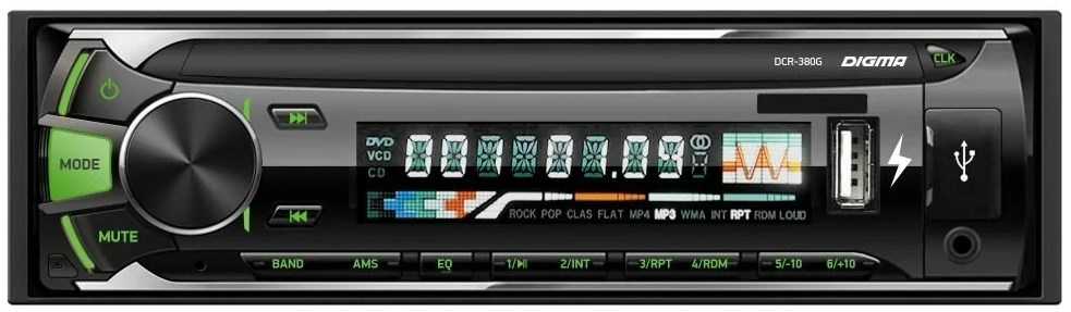 Плюсы и минусы: компактный корпус, простота установки; кнопки с зеленой подсветкой; привлекательный дизайн; поддержка USB-памяти и карт SD и MMC. Bluetooth отсутствует.