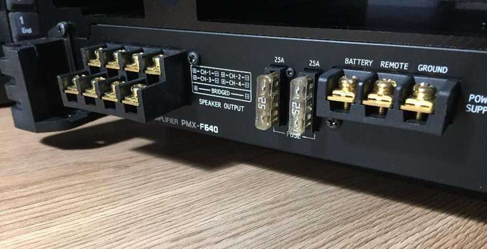 Усилители с 4 каналами удобны для экономии места. Большинство предлагаемых моделей могут работать с двумя сабами и парой акустических систем с широким частотным диапазоном. Можно запитать и мощный низкочастотник, соединяя выходы по мостовой схеме. Многие производители сразу предусматривают такой вариант эксплуатации и соответствующим образом помечают выходные клеммы устройства.
