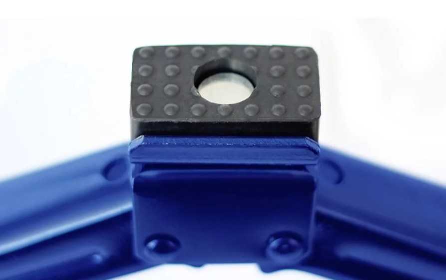 Стоимость этого товара будет около 850 рублей, что считается доступным инструментом. Модель универсальная и позволяет работать с очень высокими автомобилями. Сама высота подъема составляет 40 ми, чего достаточно будет для работы с внедорожниками. Грузоподъемность составляет 2 тонны, устройство прочное, оснащено резиновой опорой, чтобы не повреждать краску на авто. Для удобного хранения есть съемная ручка, а также сумка, куда складывается устройство после использования.