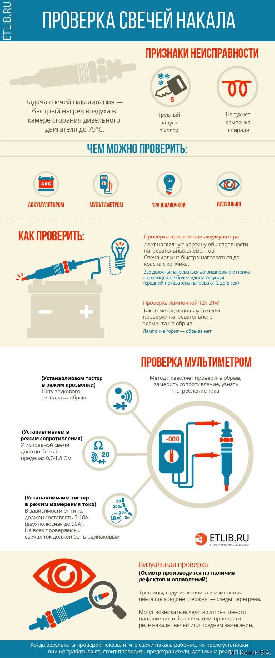 Для проверки свечей накала на дизеле, помимо визуального осмотра, необходимо использовать все ниже описанные способы.